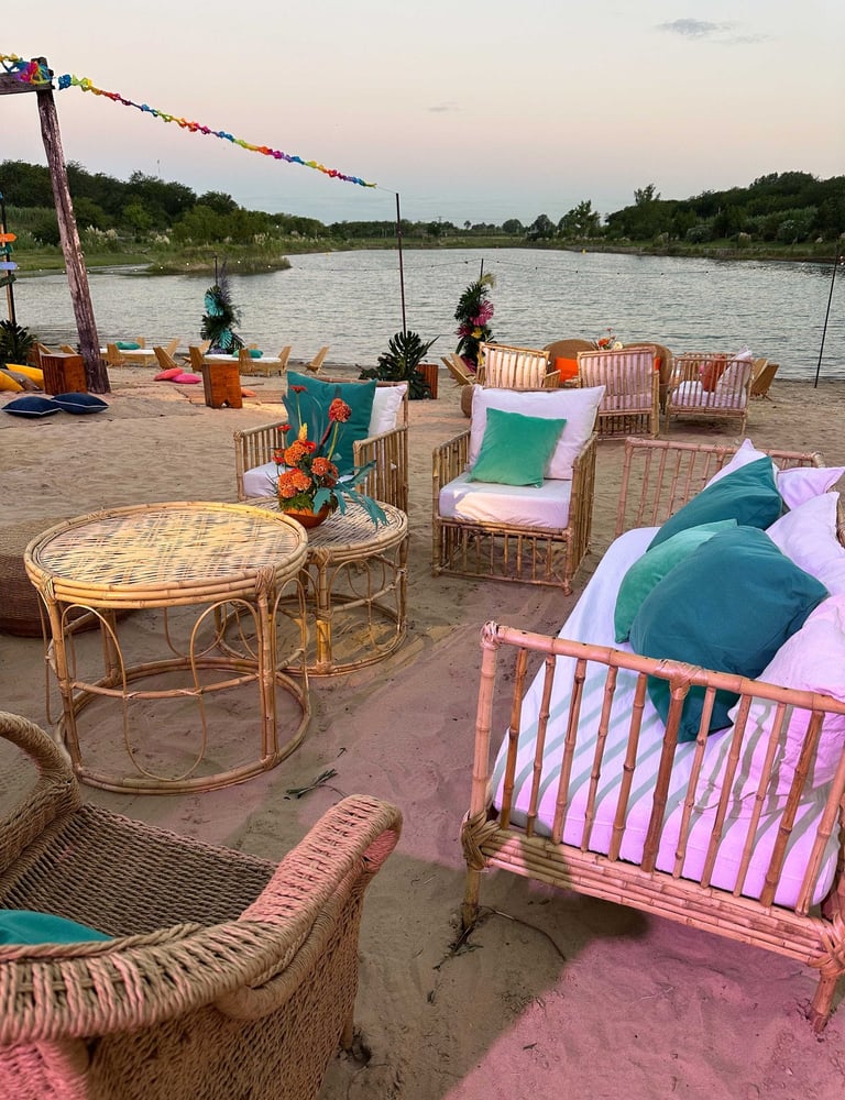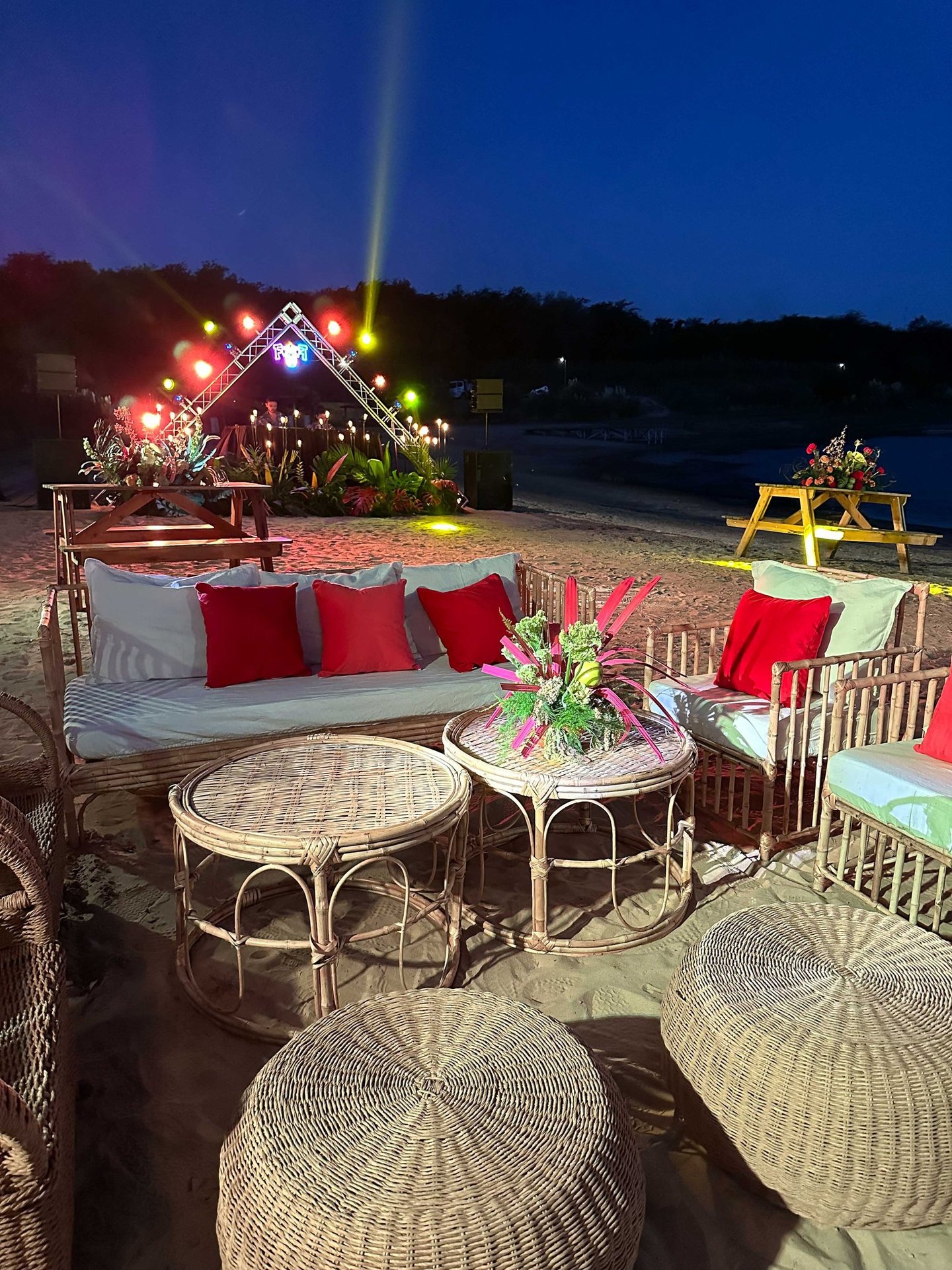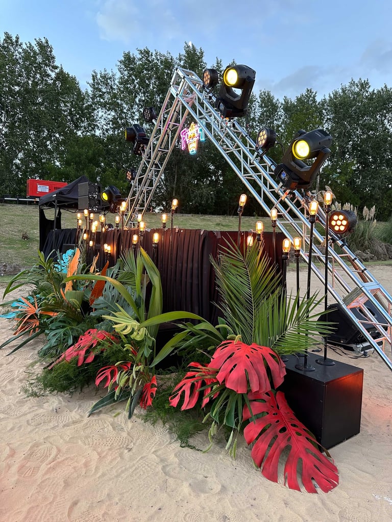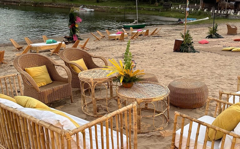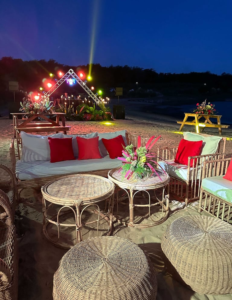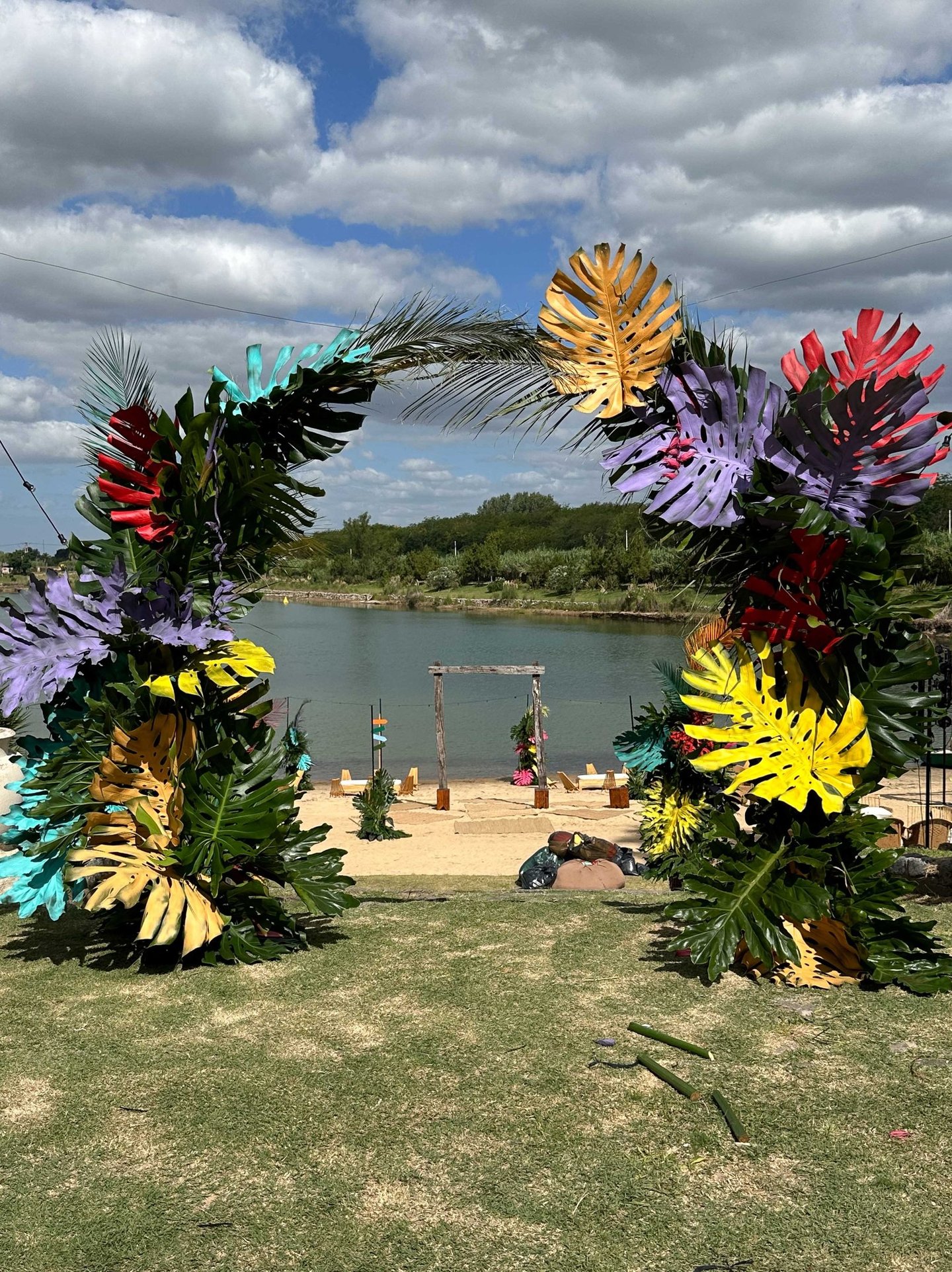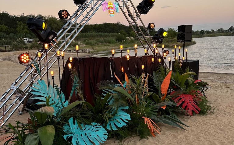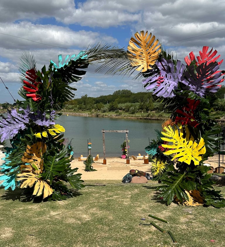 Trabajamos con fibras naturales, vegetación exuberante y una paleta cálida inspirada en el atardecer, construyendo un sunset corporativo donde naturaleza, ritmo y espacio definieron la experiencia.