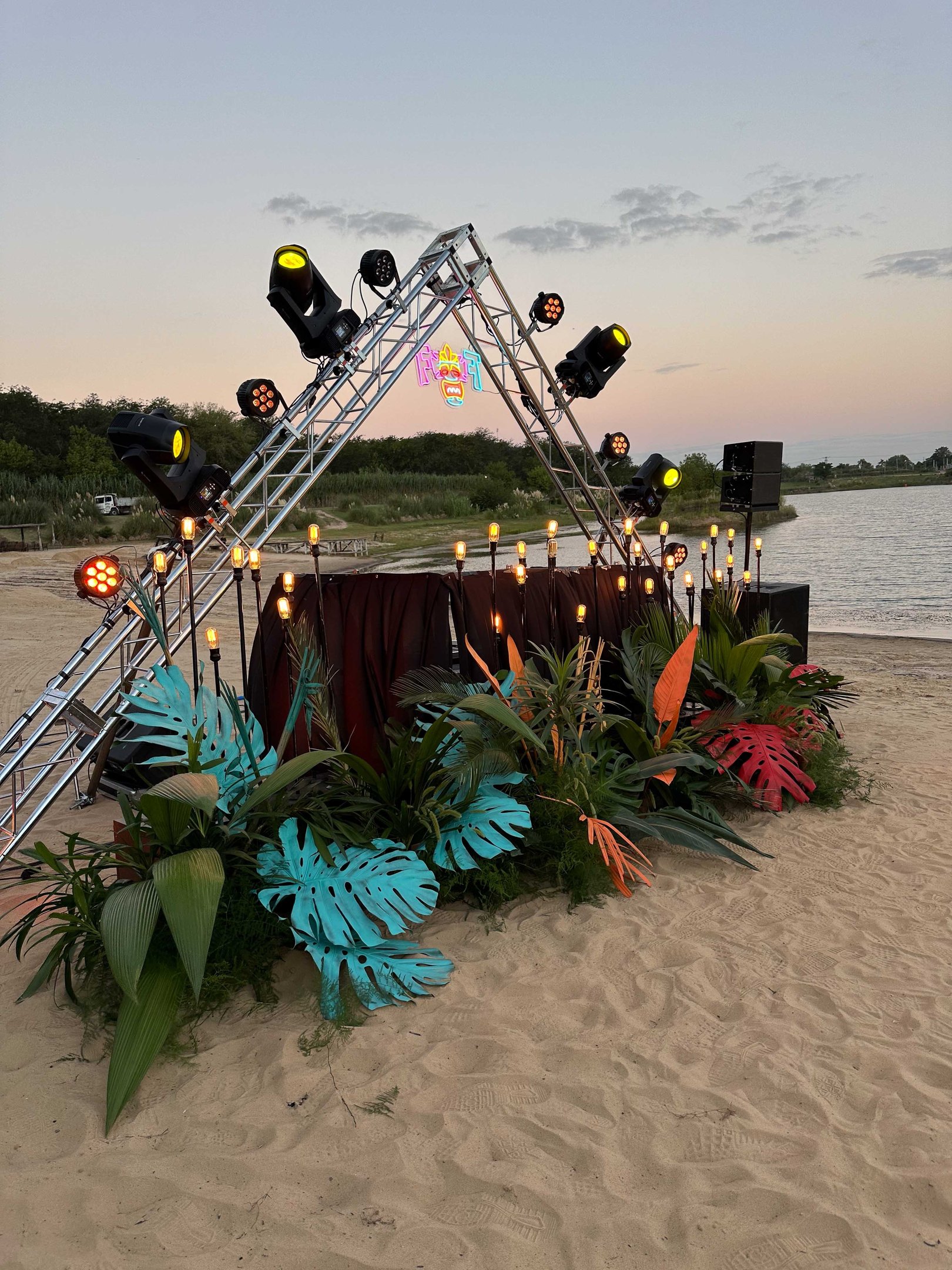 Para esta fiesta de fin de año con temática Sunset Tulum interpretamos la estética tropical desde una mirada contemporánea.