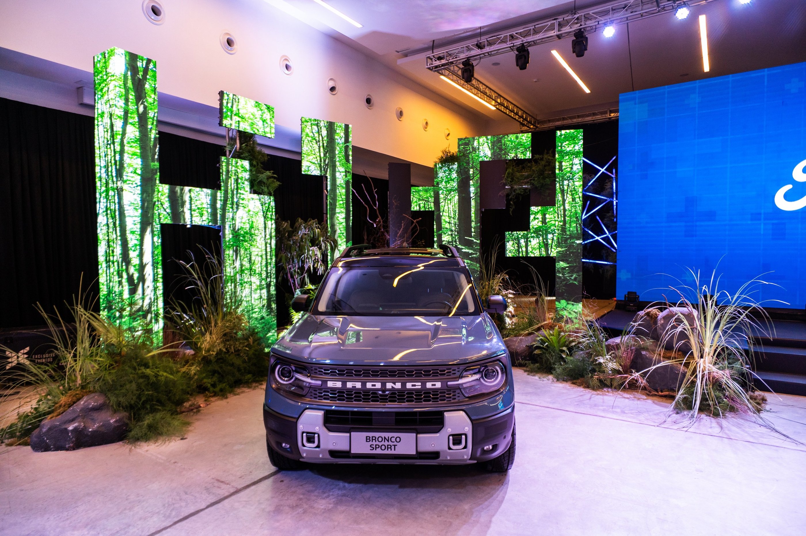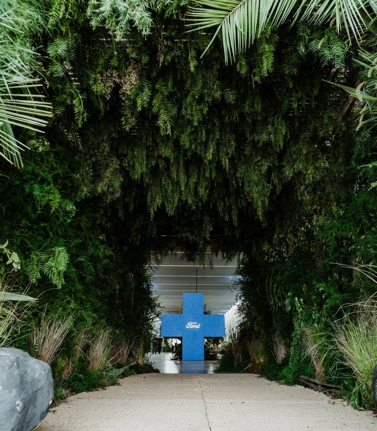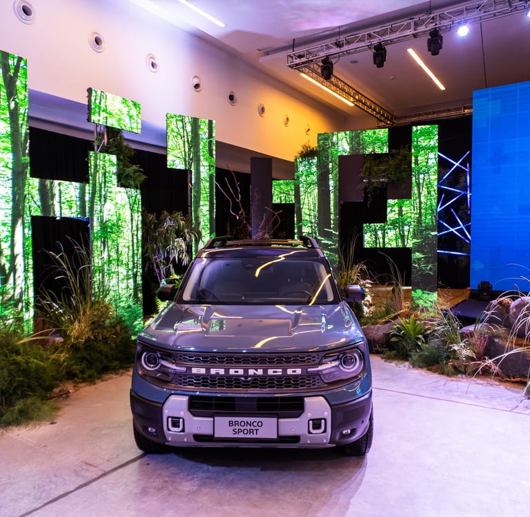Para presentar la Ford Bronco Sport diseñamos un entorno donde la naturaleza se convirtió en protagonista. Un túnel botánico de seis metros invitó a atravesar la selva y activar el espíritu aventurero, mientras que follajes exuberantes, helechos, aguaribay y musgos construyeron una puesta escenográfica inmersiva e integrada a la arquitectura y las pantallas.